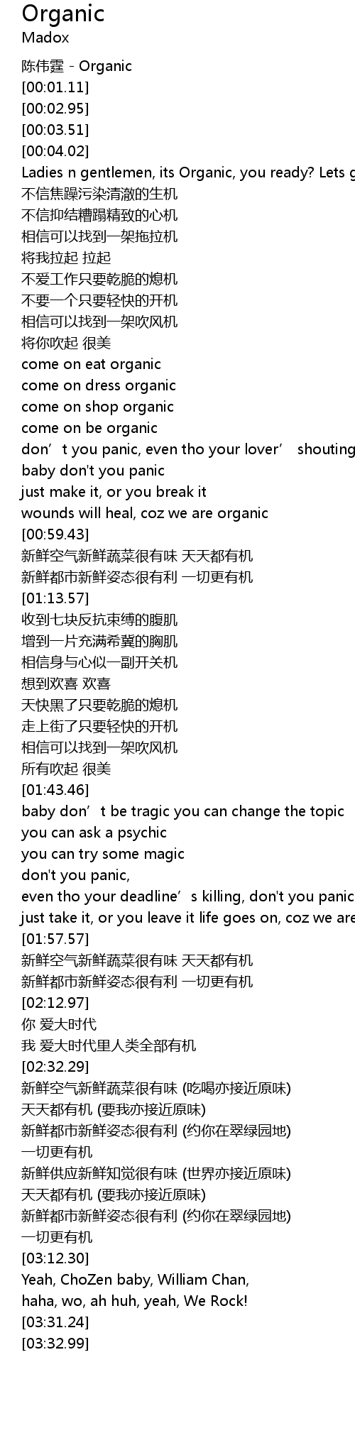 | [03:01.46] | 天天都有机 (要我亦接近原味) |