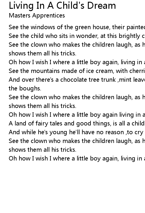 Oh how I wish I where a little boy again, living in a child's dream |