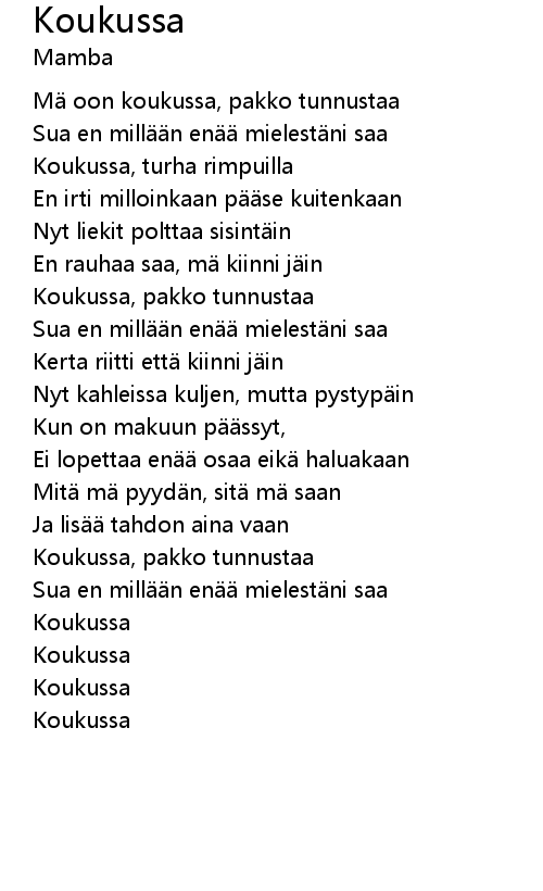 | Nyt kahleissa kuljen, mutta pystyp in | |