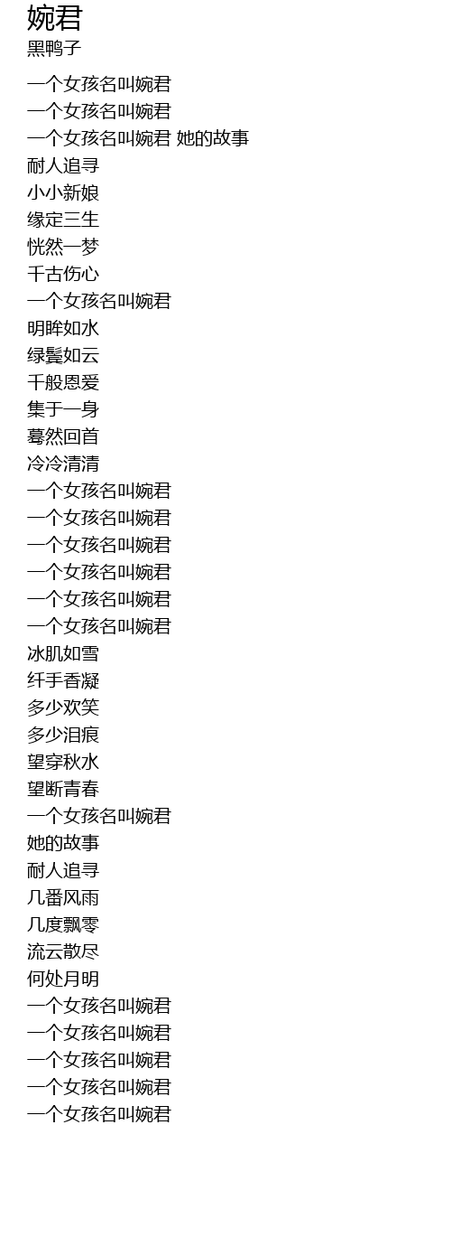 | [00:40.69] | 一个女孩名叫婉君 她的故事 |