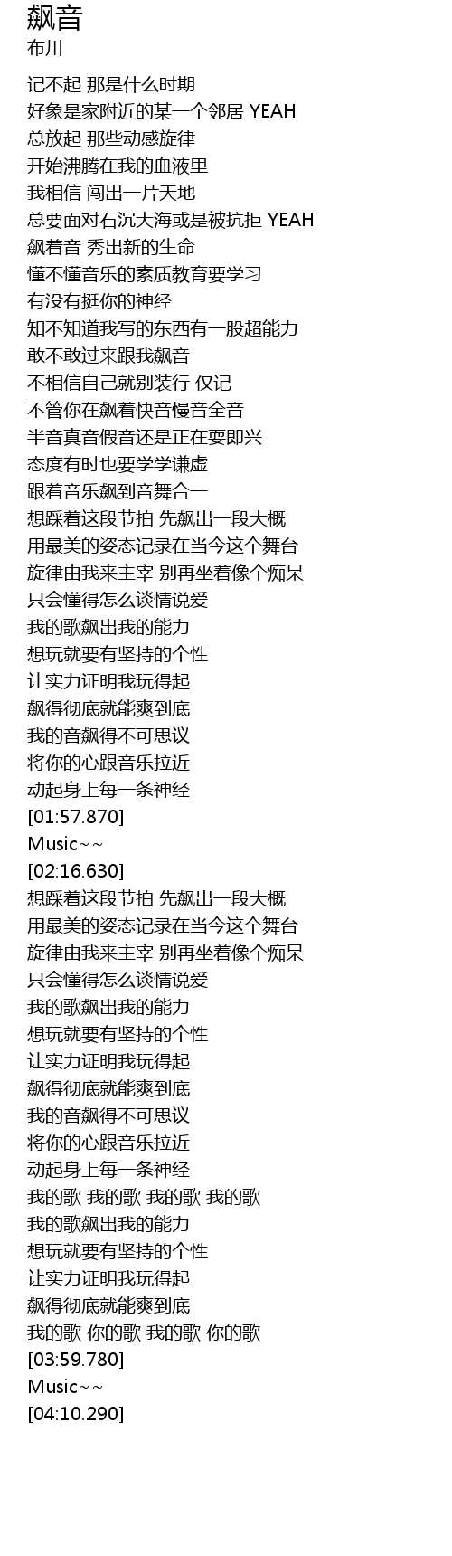 | [00:43.700] | 飙着音 秀出新的生命 |