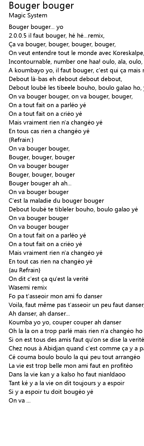 | 歌曲 | Bouger bouger |