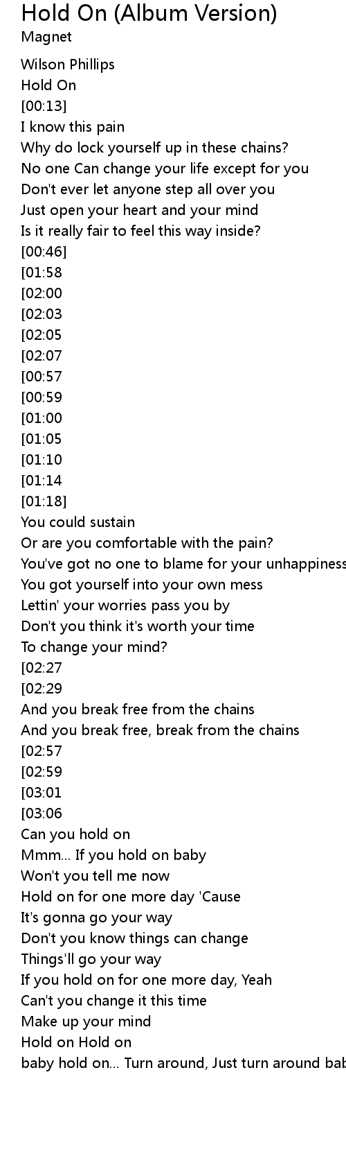 | [02:54][02:05][00:54] | Hold you down and make you cry |