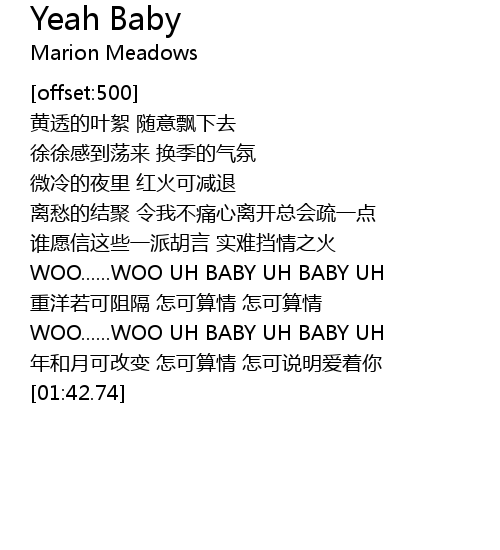 | [01:03.24] | WOO......WOO UH BABY UH BABY UH |