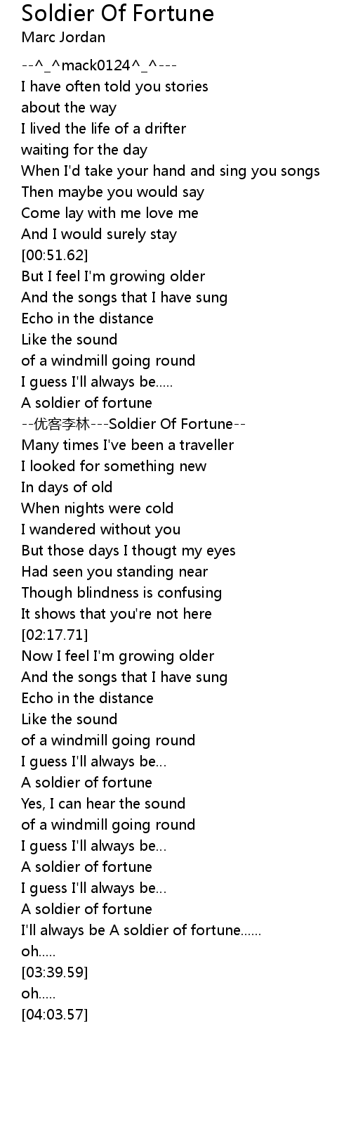 | [01:22.53] | yōu kè lǐ lín Soldier Of Fortune |