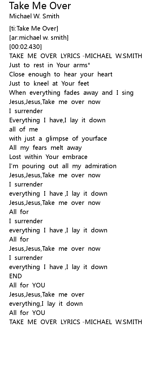 TAKE ME OVER LYRICS -MICHAEL W.SMITH |