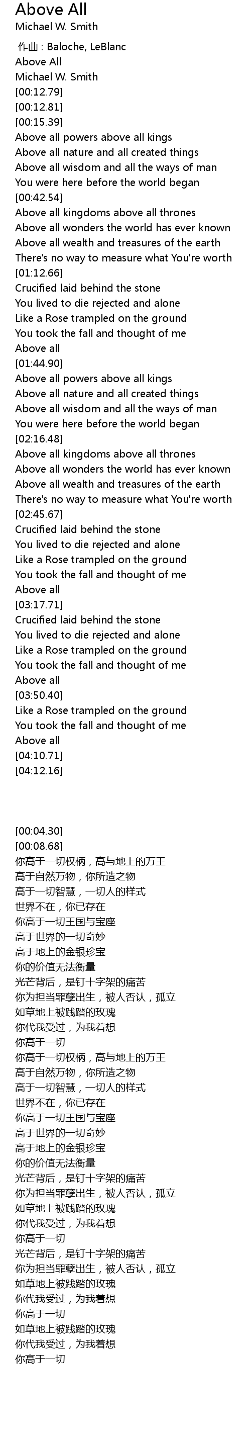 | [00:15.94] | 你高于一切权柄,高与地上的万王 |