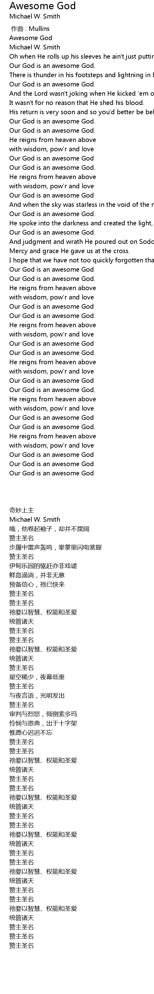 | [00:51.66] | Our God is an awesome God. |