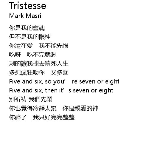 | [01:55.80] | Five and six, then it' s seven or eight |