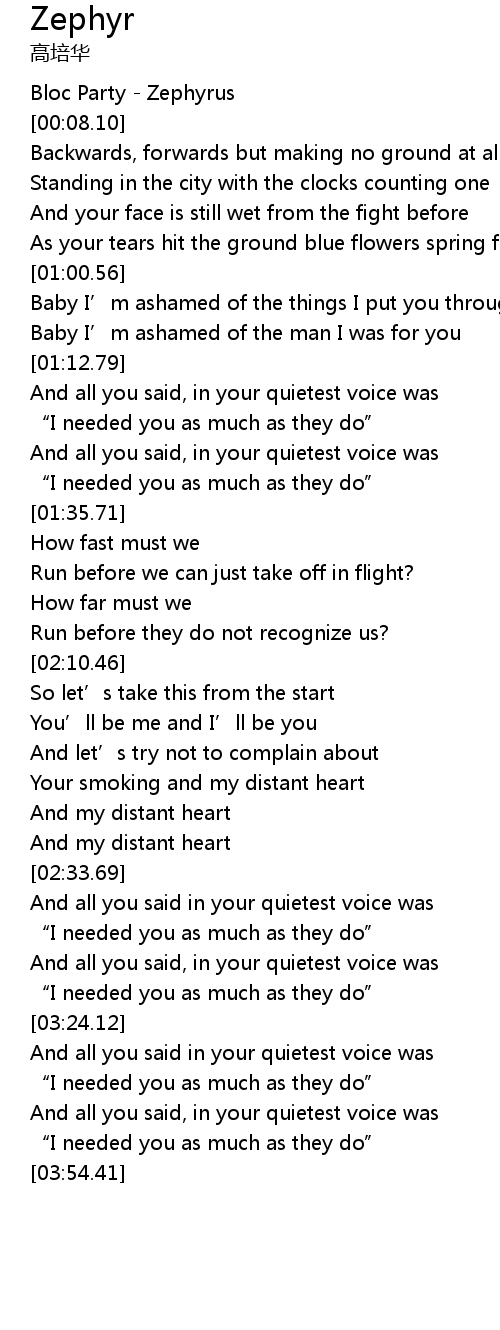 | [00:01.12] | Bloc Party Zephyrus |