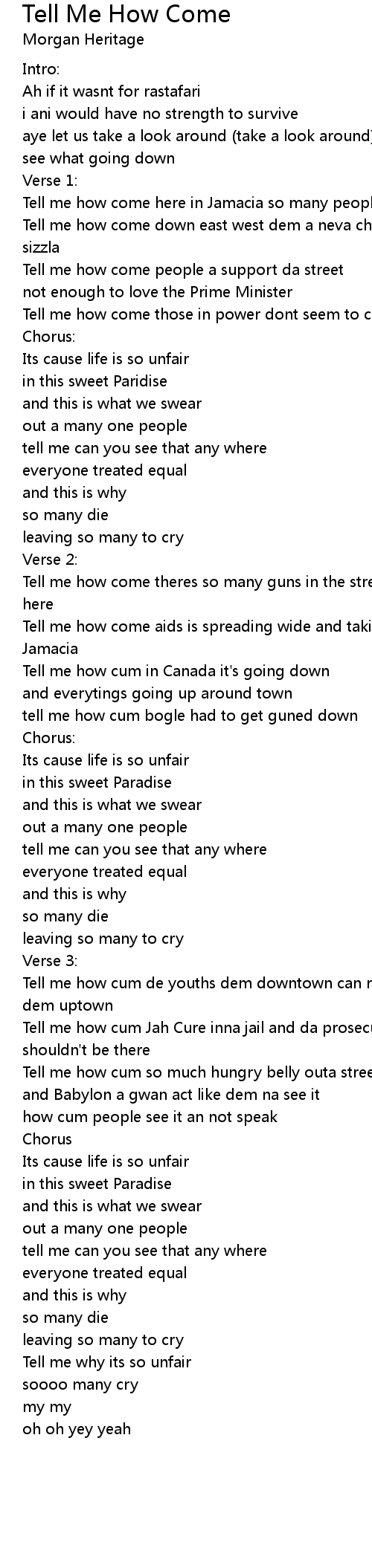 Tell me how come here in Jamacia so many people still a fight Rasta |