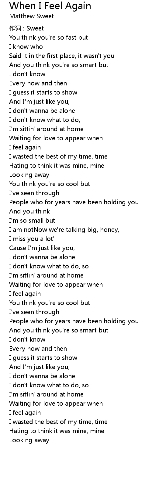 | 歌曲 | When I Feel Again |