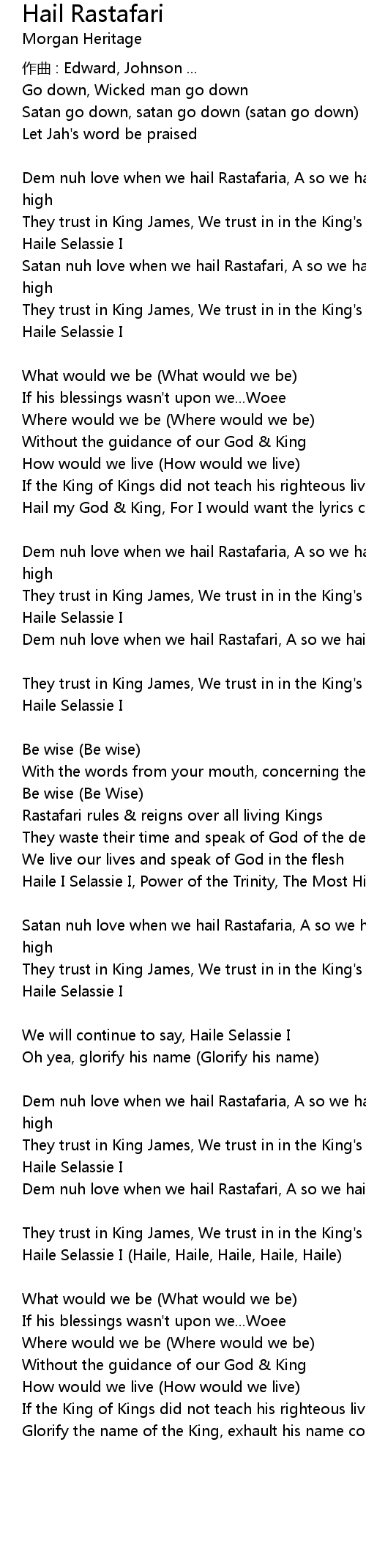 | 歌曲 | Hail Rastafari |