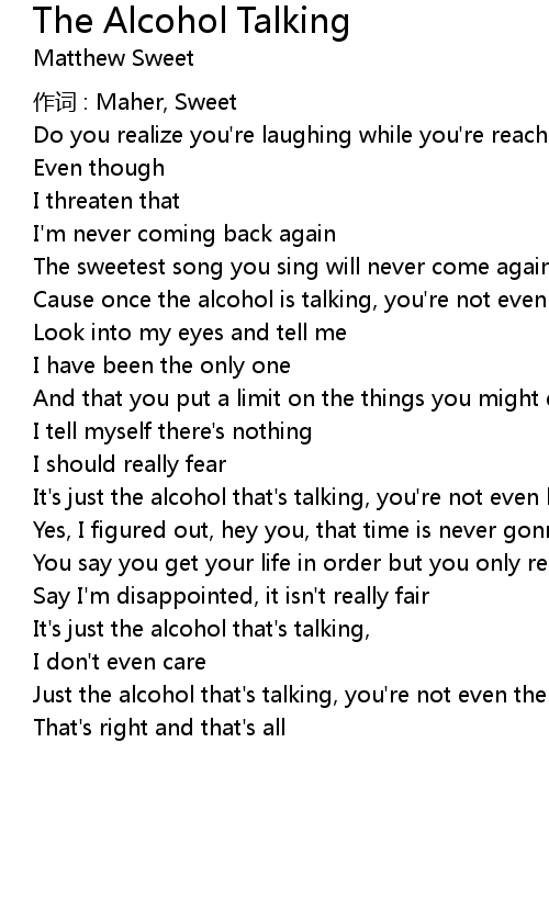 | It' s just the alcohol that' s talking, you' re not even here, that' s right | |