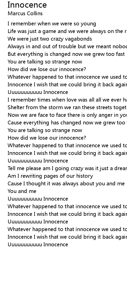 Innocence I wish that we could bring it back again just like before |