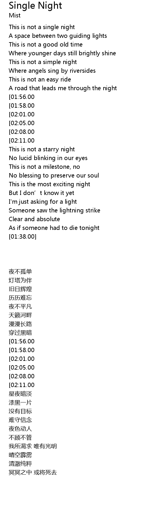 | [00:42.00][01:58.00][02:18.00] | I know who you are |