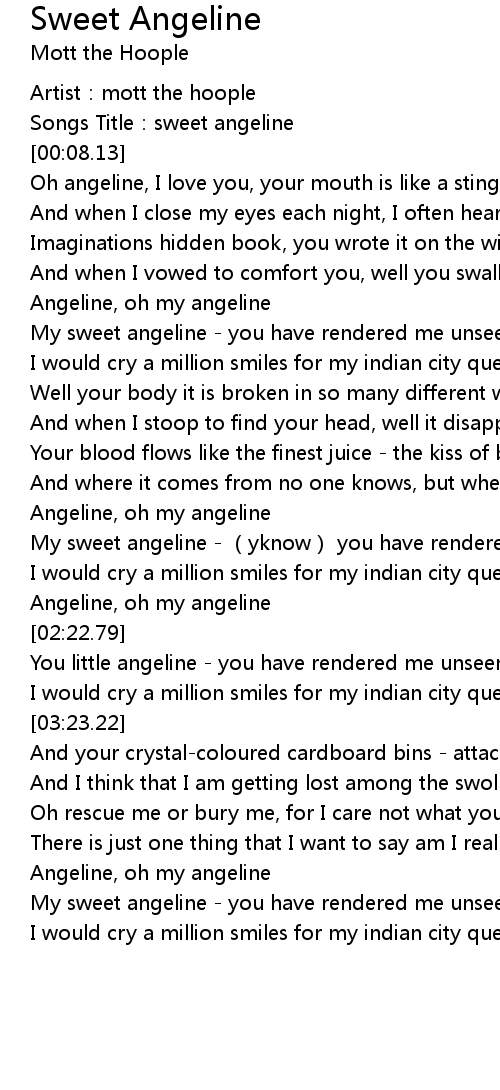 | [00:18.00] | Oh angeline, I love you, your mouth is like a sting |