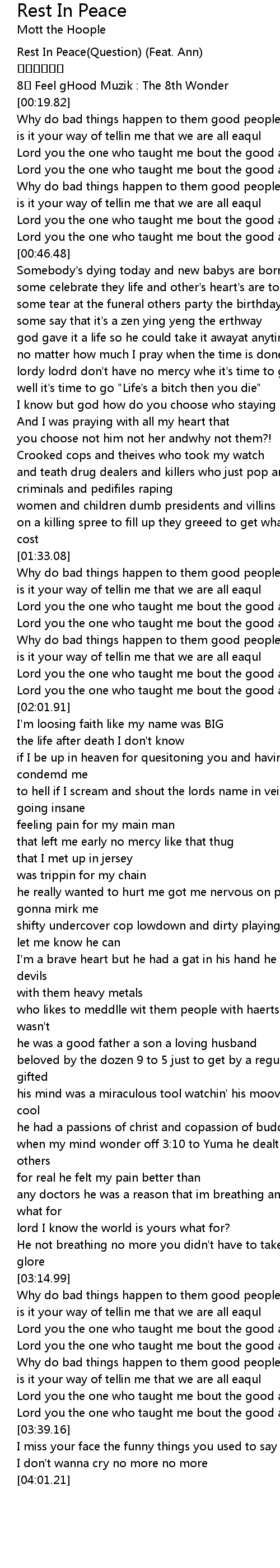 | [00:06.17] | Rest In Peace Question Feat. Ann |