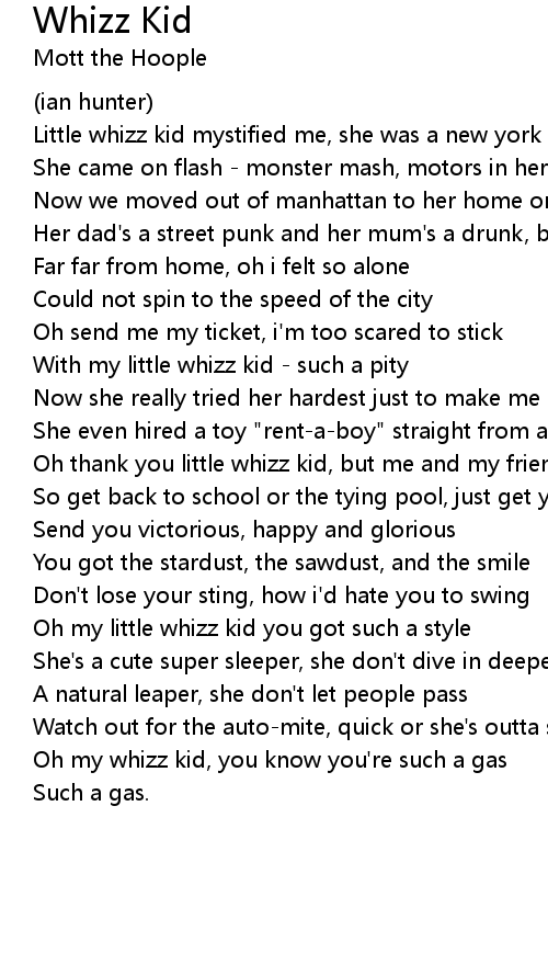 Oh my whizz kid, you know you're such a gas |