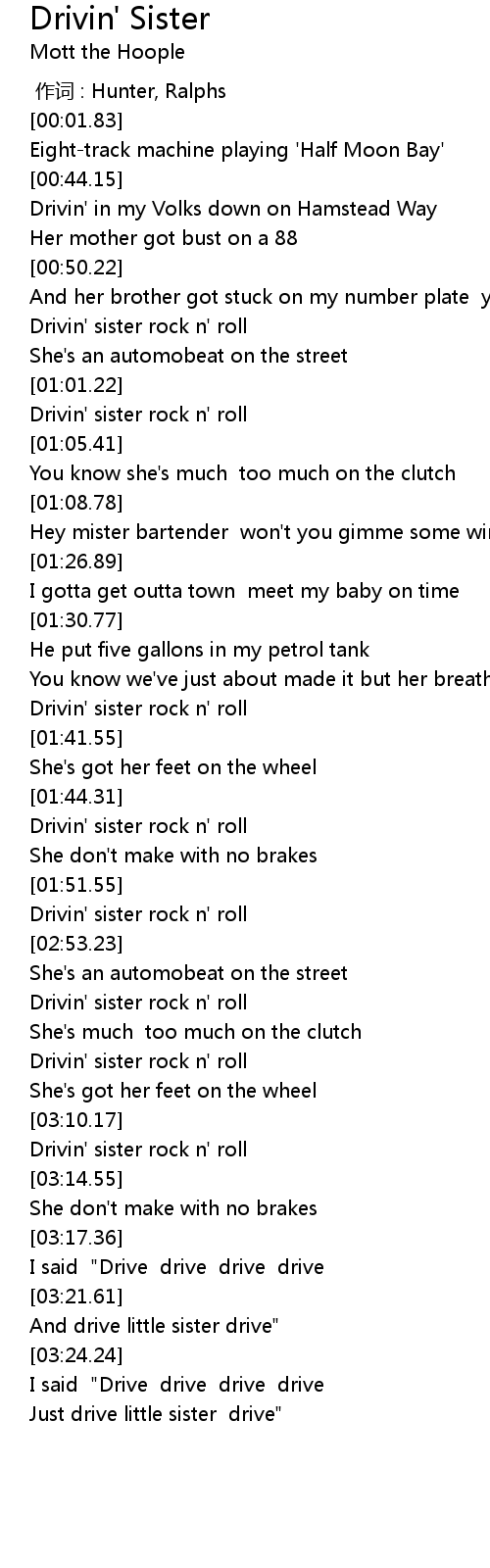 | [03:22.36] | And drive little sister drive" |