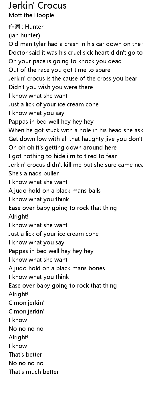 | Jerkin' crocus didn't kill me but she sure came near | |