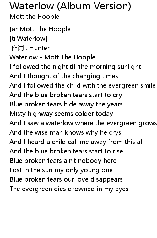 | [00:01.36] | Waterlow - Mott The Hoople |
