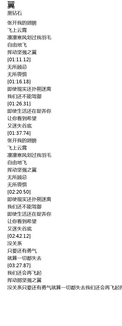 | [03:33.98] | 挥动那坚强之翼 没关系只要还有勇气就算一切都失去我们还会再飞起挥动那坚强之翼 |