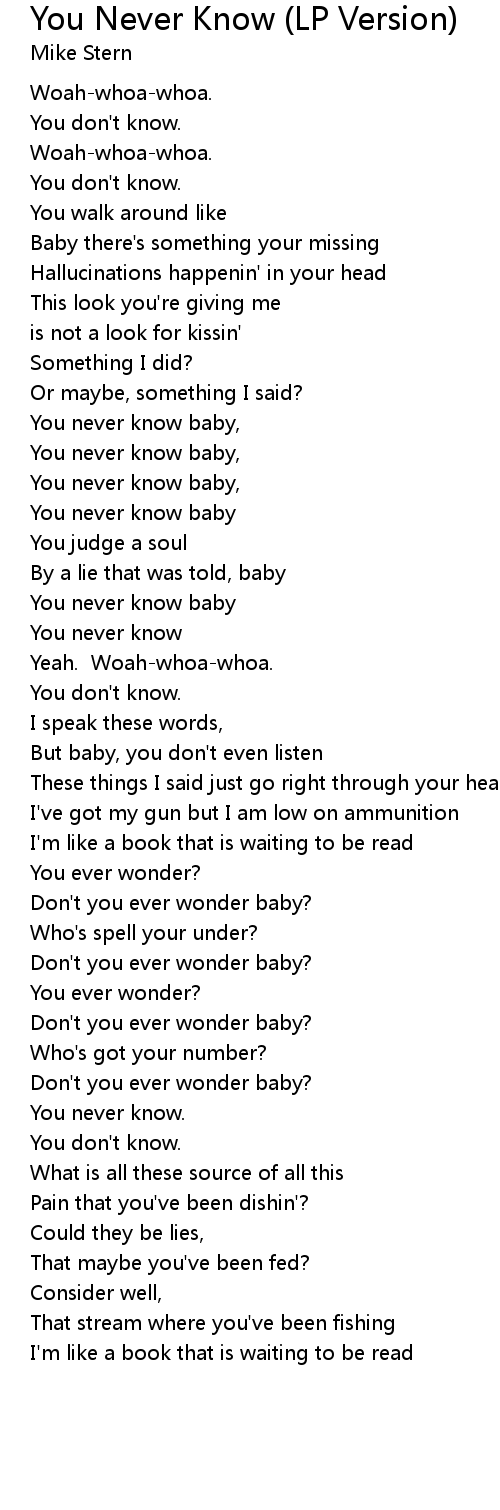 You never know baby, |