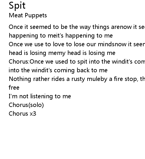 | Chorus:Once we used to spit into the windit's coming back to mewe used to spit into the windit's coming back to me | |