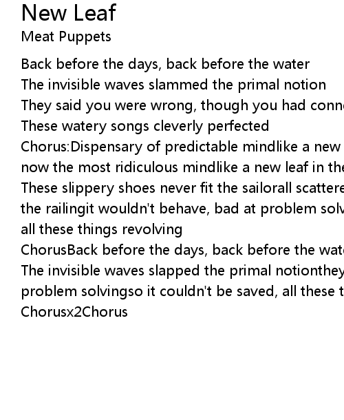 Chorus:Dispensary of predictable mindlike a new leaf, from the old daysunfolding now the most ridiculous mindlike a new leaf in the old ways |