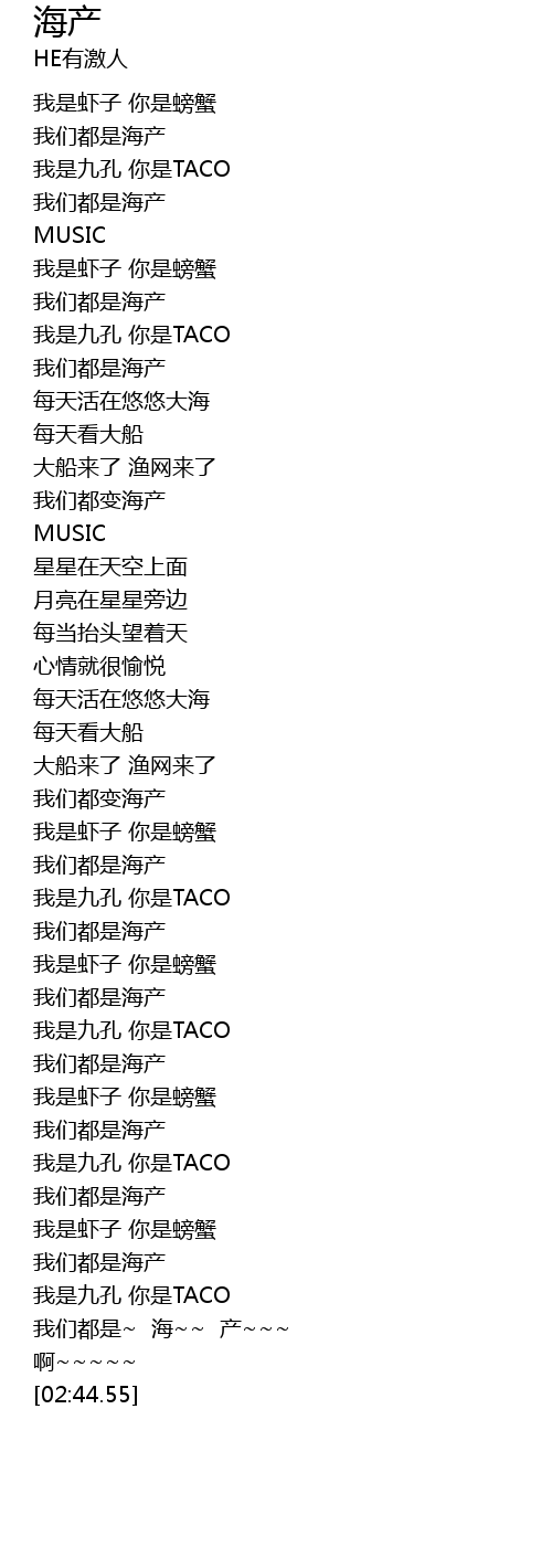 | [02:17.66] | 我们都是海产 |