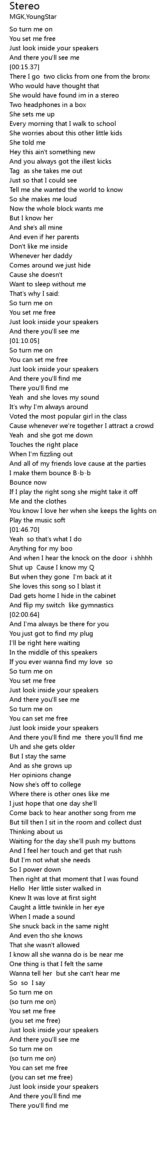 | [00:31.63] | She would have found im in a stereo |