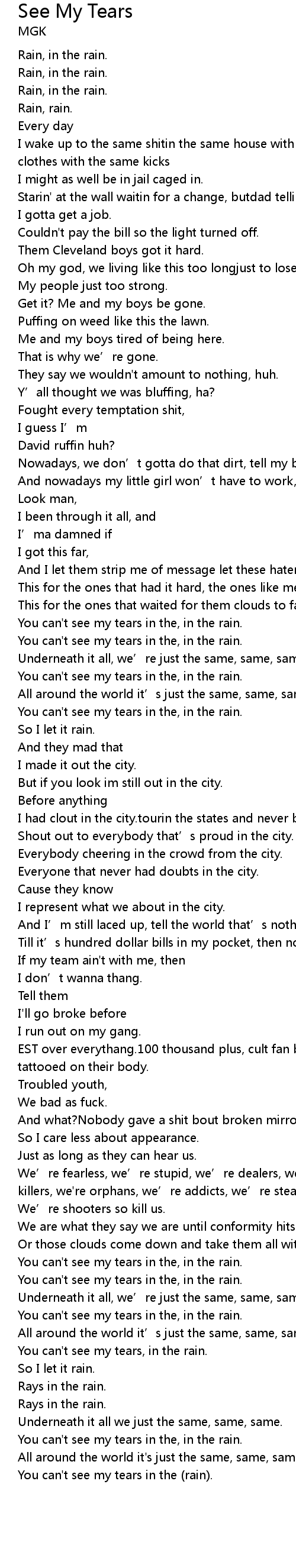 | You can't see my tears in the (rain). |