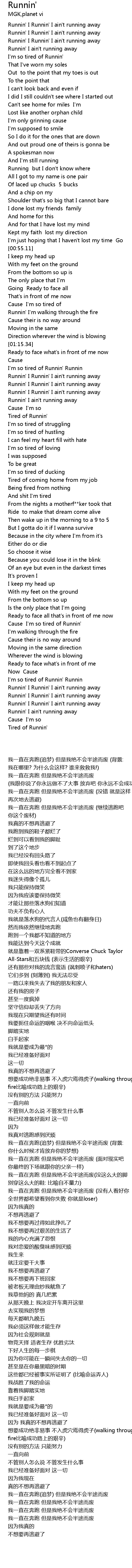 I'm so tired of Runnin' Runnin |