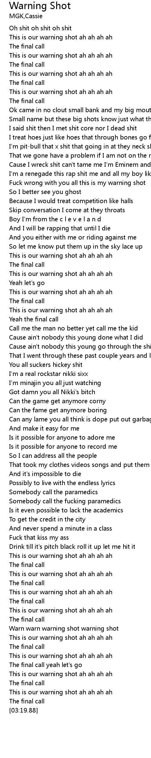 | [00:55.87] | Fuck wrong with you all this is my warning shot |