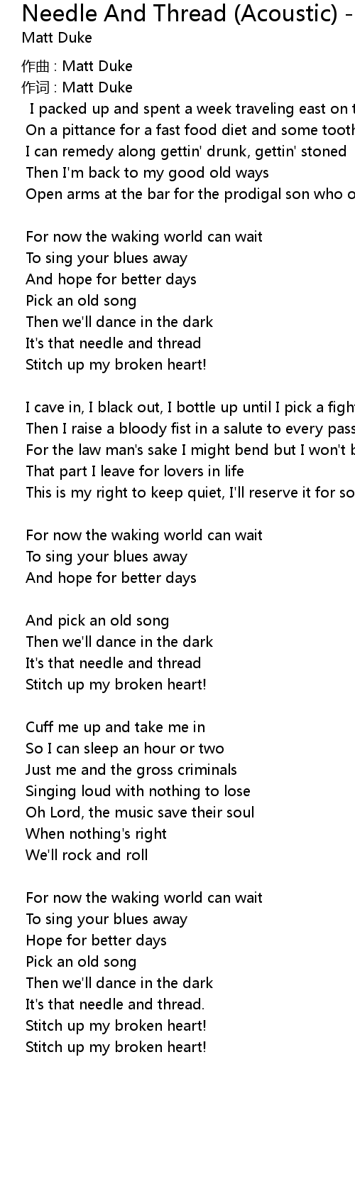 | 歌曲 | Needle And Thread (Acoustic) - unplug |