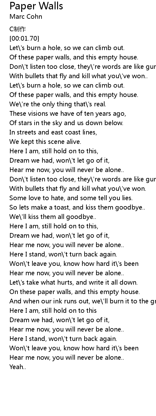 | [00:58.94] | Of these paper walls, and this empty house. |