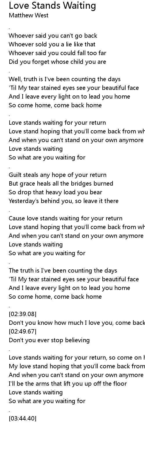 Cause love stands waiting for your return |