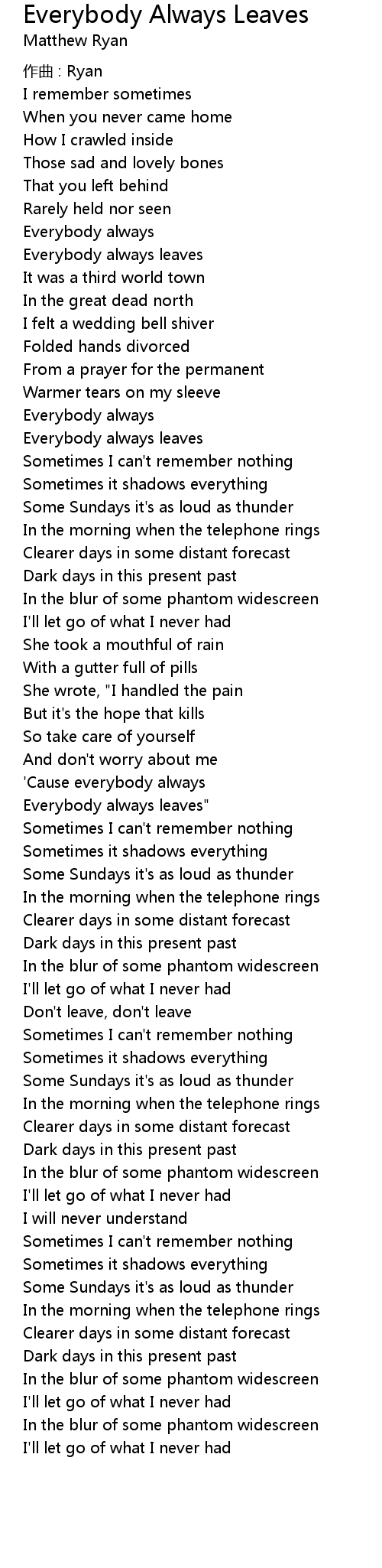| 歌曲 | Everybody Always Leaves |
