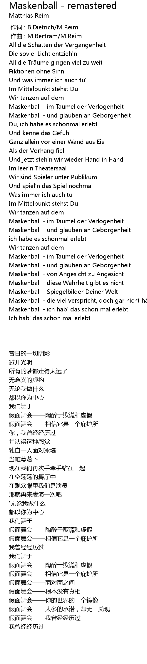 | 歌曲 | Maskenball - remastered |