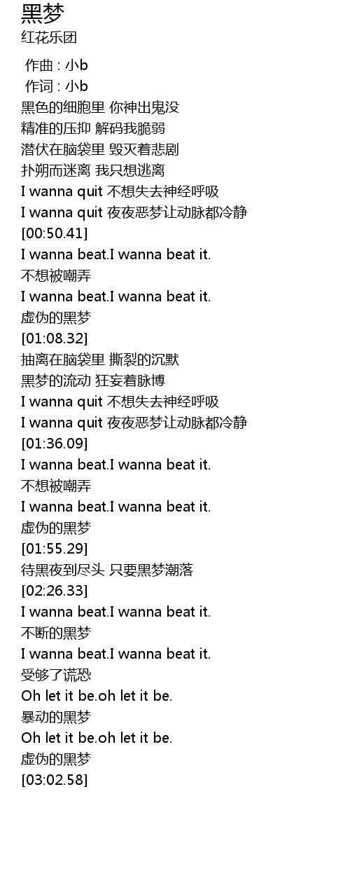 | [02:34.77] | I wanna beat. I wanna beat it. |
