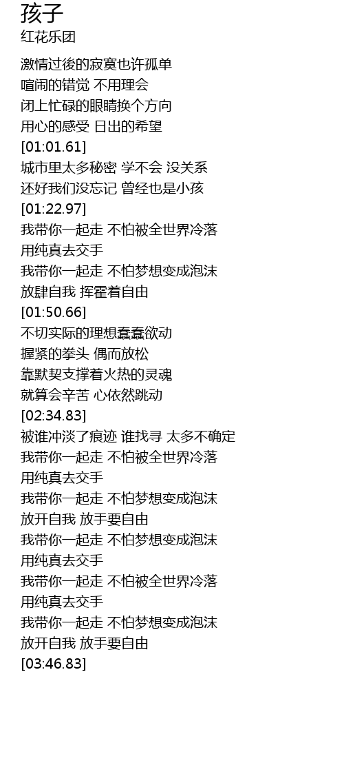 | [01:13.84] | 还好我们没忘记 曾经也是小孩 |