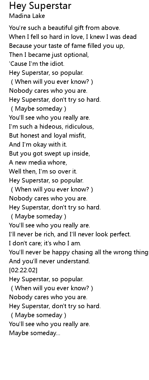 | [02:45.86] | Hey Superstar, don't try so hard. |