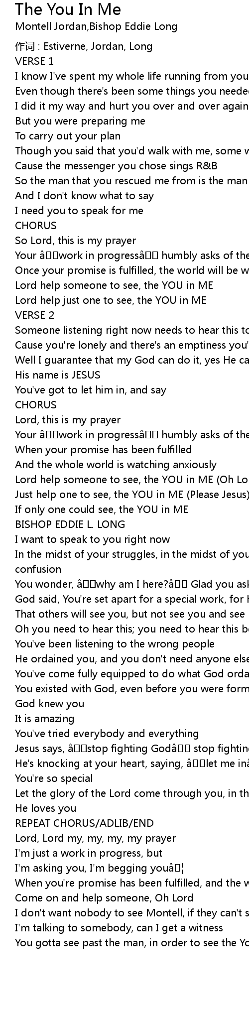 | Lord help someone to see, the YOU in ME (Oh Lord) | |