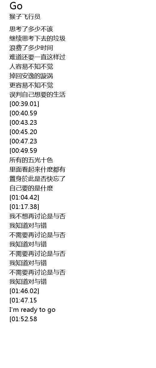 | [01:39.62] | bù xū yào zài tǎo lùn shì yǔ fǒu |