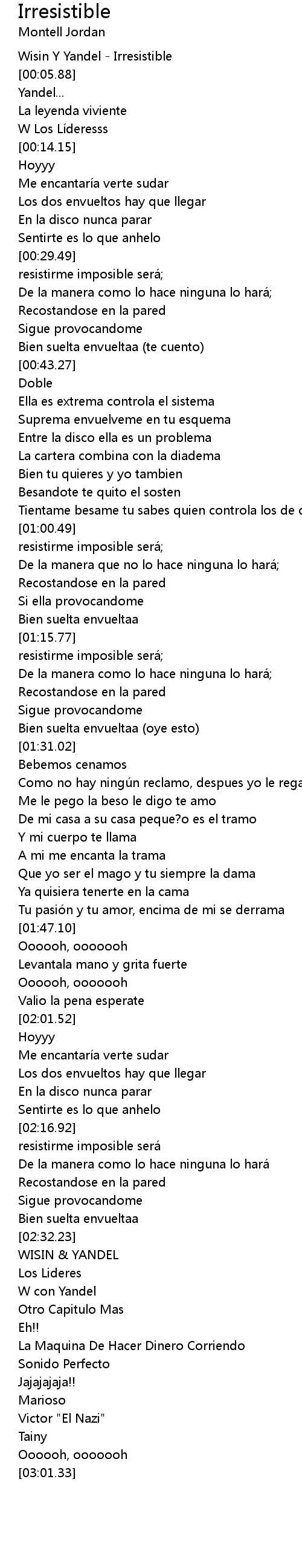 | [00:04.88] | Wisin Y Yandel - Irresistible |