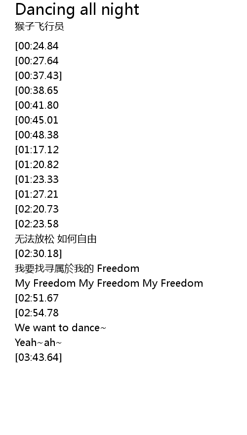 | [02:42.41] | My Freedom My Freedom My Freedom |