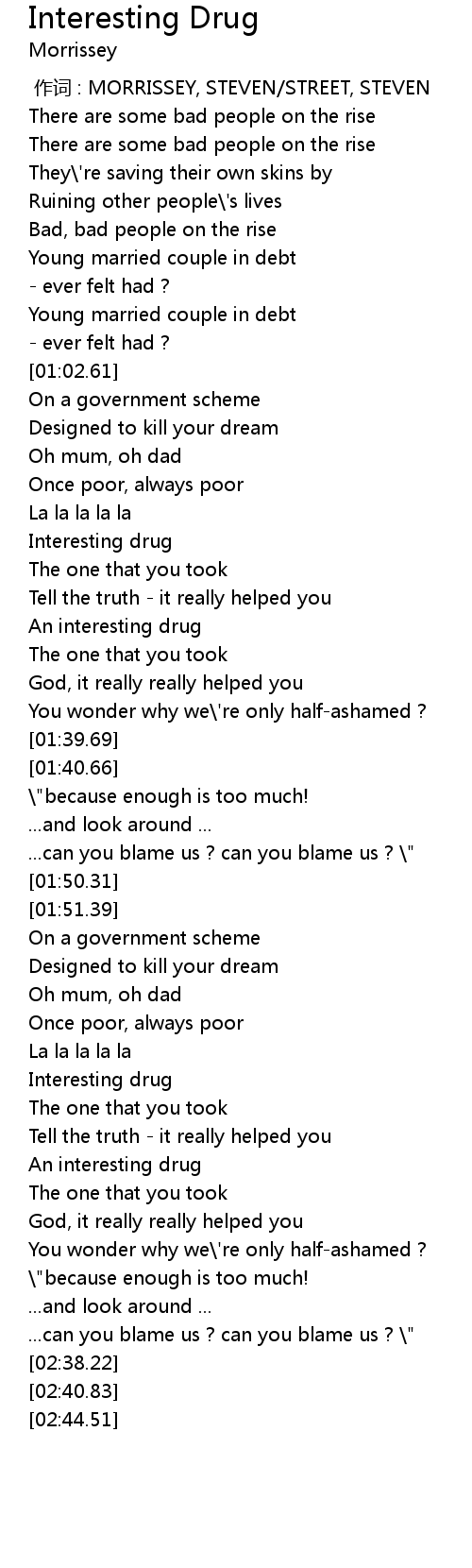 | [00:00.00] | 作词 : MORRISSEY, STEVEN/STREET, STEVEN |