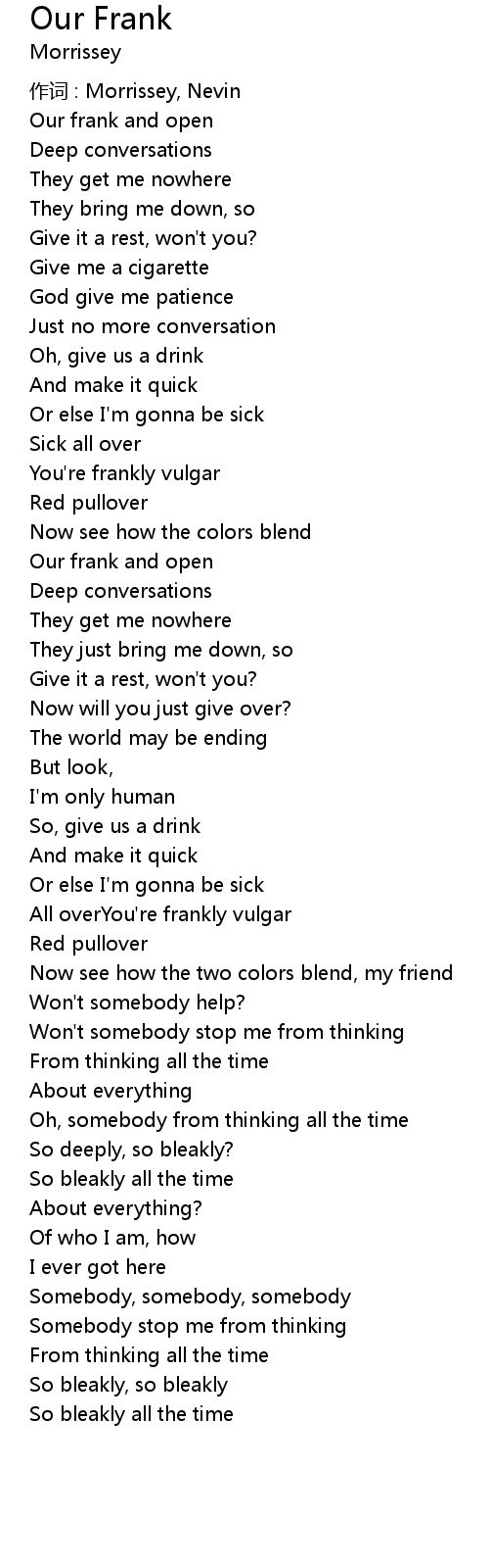 | 歌曲 | Our Frank |