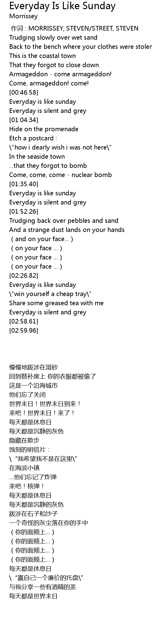 | [01:38.93] | Everyday is like sunday |